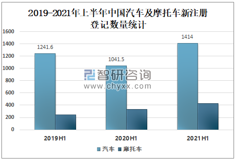 2021年上半年中國汽車新注冊(cè)登記1414萬輛,與去年同期相比增加372.5萬輛,增長35.76%;與2019年上半年相比增加172.4萬輛,增長13.88%。摩托車新注冊(cè)登記426萬輛,與去年同期相比增加93.2萬輛,增長28.02%;與2019年上半年相比增加181.8萬輛,增長74.53%。