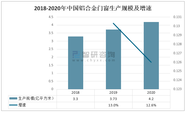 2018-2020年中國(guó)鋁合金門(mén)窗生產(chǎn)規(guī)模及增速