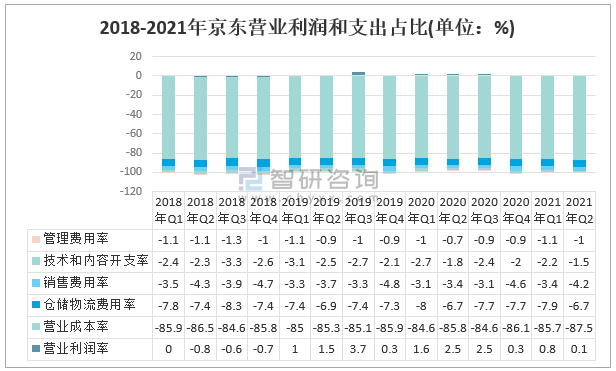 2018-2021年京東營業利潤和支出占比(單位:%)