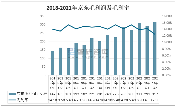 2018-2021年京東毛利潤及毛利率
