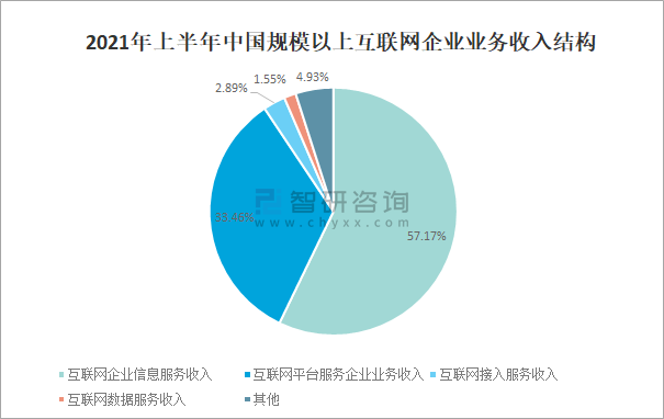 2021年上半年中國規模以上互聯網企業業務收入結構