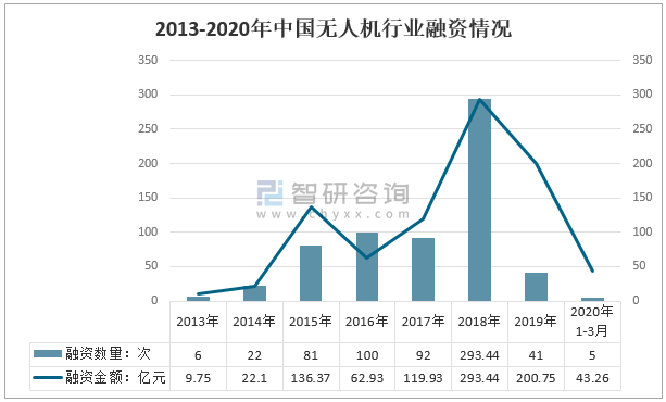 2013-2020年中國無人機行業融資情況