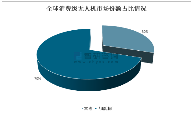 智研咨詢發布的《2021-2027年中國無人機行業市場全景調查及市場分析預測報告》顯示:中國無人機行業的發展特別是民用無人機的發展走在世界前列,根據IDC的數據統計,深圳市大疆創新科技有限公司占據著全球消費級無人機市場70%以上的份額,在全球民用無人機企業中排名第一。