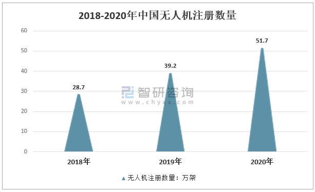 注冊無人機共51.7萬架,較2019年增長12.5萬架,同比增長31.9%。