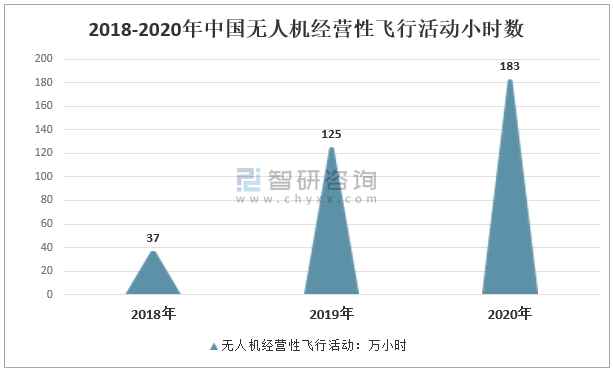 從無人機經營性飛行活動小時數來看,2020年,參與民航局無人機云交換系統的無人機飛行小時共有183萬小時,較2019年增長58萬小時,同比增長46.4%。