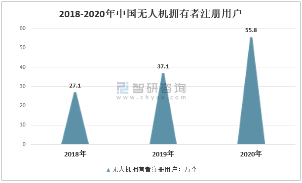 2018-2020年中國無人機擁有者注冊用戶