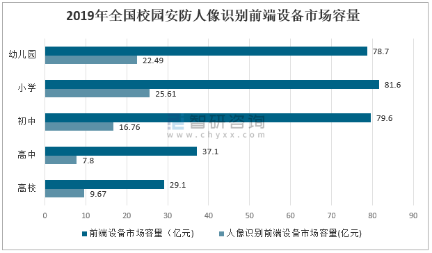 而在智慧校園建設中,人像識別作為新型的高效無介質識別系統,能有效的杜絕社會人員進入校園,目前已成為校園升級改造的主要方向。據測算,2019年全國校園人像識別設備市場需求量已超82.3億元。