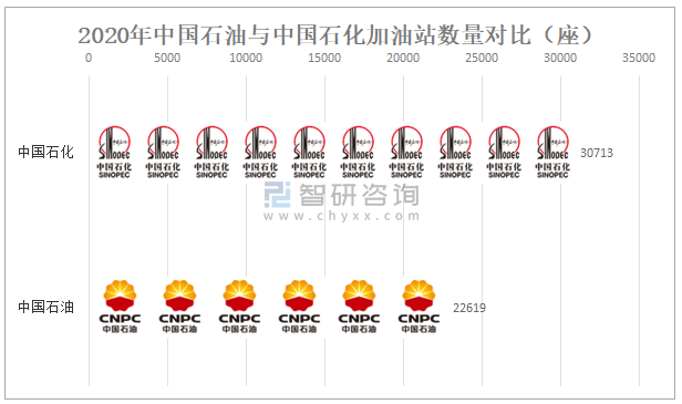 從加油站數量來看,中國石化加油站數量明顯高于中國石油,截止2020年年底中國石化加油站總數為30713座,中國石油加油站總數為22619座。