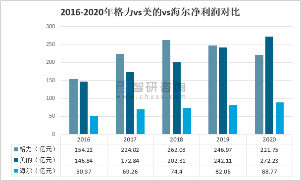 2016-2020年格力vs美的vs海爾凈利潤對比