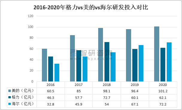 2016-2020年格力vs美的vs海爾研發(fā)投入對比