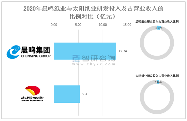 2020年晨鳴紙業(yè)與太陽紙業(yè)研發(fā)投入及占營業(yè)收入的比例對比(億元)