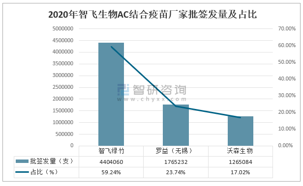 2020年智飛生物AC結合疫苗廠家批簽發量及占比