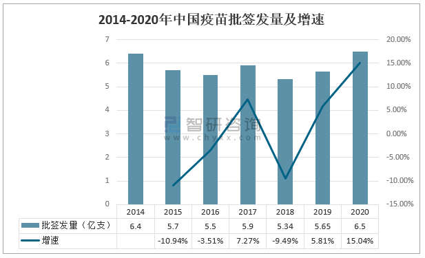 2014-2020年中國疫苗批簽發量及增速