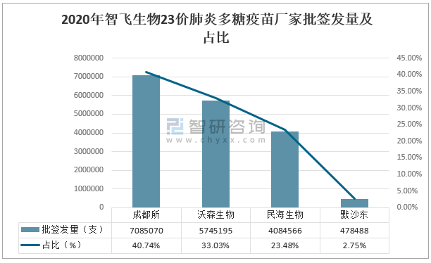 2020年智飛生物23價肺炎多糖疫苗廠家批簽發量及占比