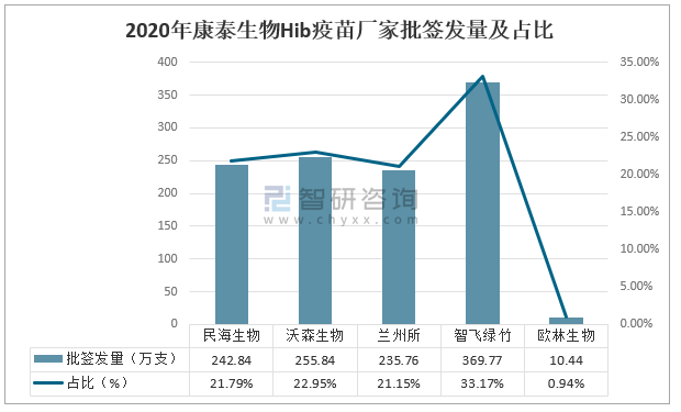 2020年康泰生物Hib疫苗廠家批簽發量及占比
