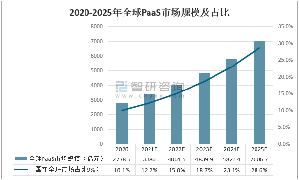 2020-2025年全球PaaS市場規模及占比