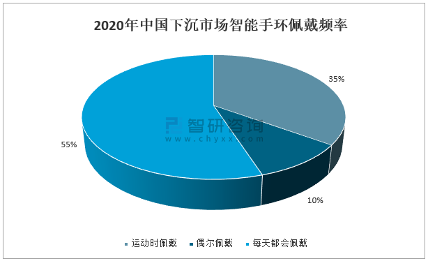 數據顯示:2020年中國下沉市場智能手環擁有者中,55%的人每天都會佩戴智能手環,34%的人在運動時佩戴。