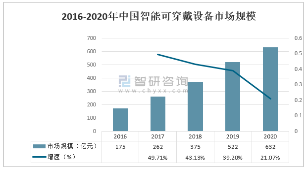 2016-2020年中國智能可穿戴設備市場規模