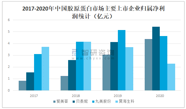 2017-2020年中國膠原蛋白市場主要上市企業歸屬凈利潤統計(億元)