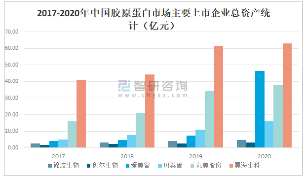 2017-2020年中國膠原蛋白市場主要上市企業總資產統計(億元)
