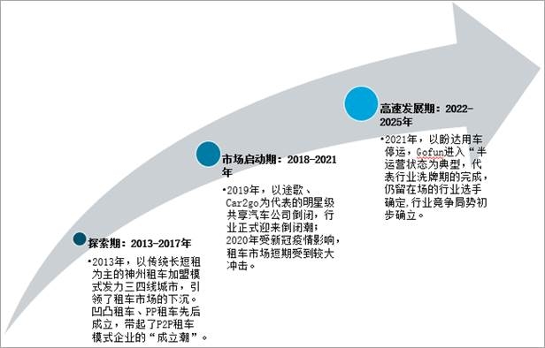 我國租車市場經歷行業洗牌,即將迎來新一波高速發展期,2021年,以盼達用車停運,Gofun進入“半運營狀態為典型,代表行業洗牌期的完成,仍留在場的行業選手確定,行業競爭局勢初步確立。