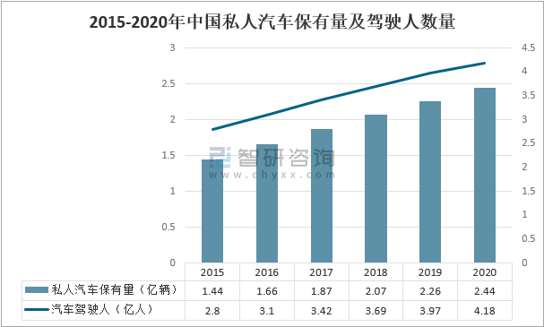 2015-2020年中國私人汽車保有量及駕駛人數量