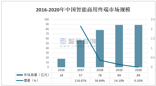 2016-2020年中國智能商用終端市場規模