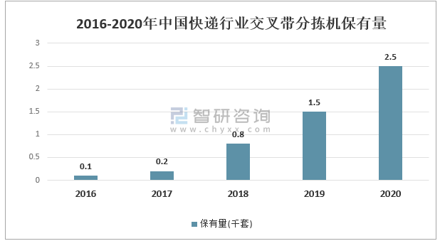 2016-2020年中國快遞行業交叉帶分揀機保有量