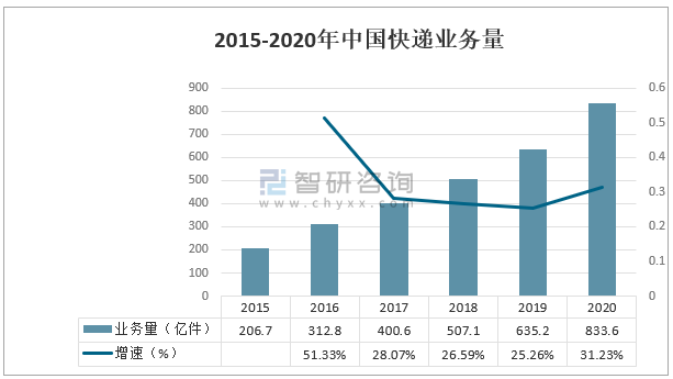 2015-2020年中國快遞業務量