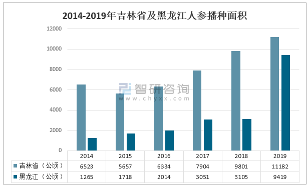 2014-2019年吉林省及黑龍江人參播種面積