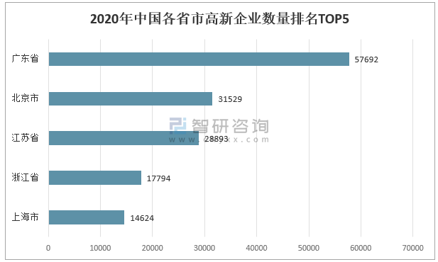 2020年中國各省市高新企業(yè)數(shù)量排名TOP5