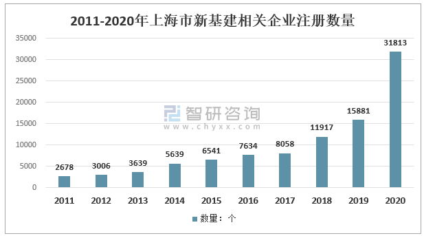2011-2020年上海市新基建相關(guān)企業(yè)注冊數(shù)量