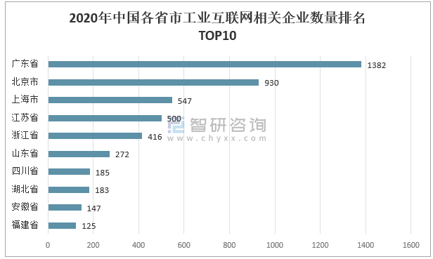 2020年中國各省市工業(yè)互聯(lián)網(wǎng)相關(guān)企業(yè)數(shù)量排名TOP10