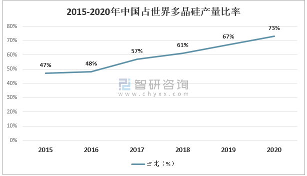 2015-2020年中國占世界多晶硅產量比率