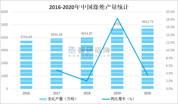智研咨詢發布的《2021-2027年中國滌綸長絲行業市場供需模式及競爭戰略分析報告》數據顯示:在產能迅速增長的同時,伴隨著品種優化,滌綸品種從最初的以短纖為主發展到以長絲為主,裝飾用、產業用比例也正在逐步擴大,2020年中國滌綸長絲產量達3869.28萬噸,較2019年增加了138.28萬噸,同比增長3.7%。