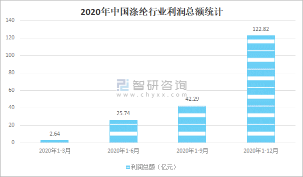 經過多年的發展,我國已經成為當之無愧的滌綸大國,實現從大國到強國、從數量到質量、從外延發展到內涵發展的轉變,2020年1-12月中國滌綸行業利潤總額達122.82億元,較2020年9月末增加了80.53億元。