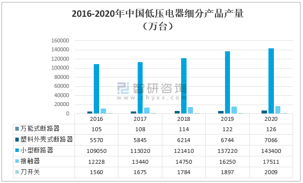 2016-2020年中國(guó)低壓電器細(xì)分產(chǎn)品產(chǎn)量