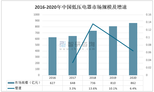 2016-2020年中國(guó)低壓電器市場(chǎng)規(guī)模及增速
