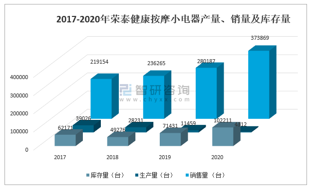 2017-2020年榮泰健康按摩小電器產量、銷量及庫存量
