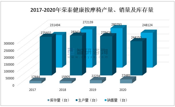 2017-2020年榮泰健康按摩椅產量、銷量及庫存量