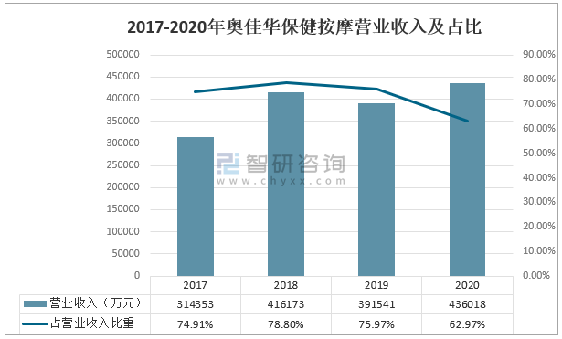 2017-2020年奧佳華、榮泰健康按摩椅營業收入