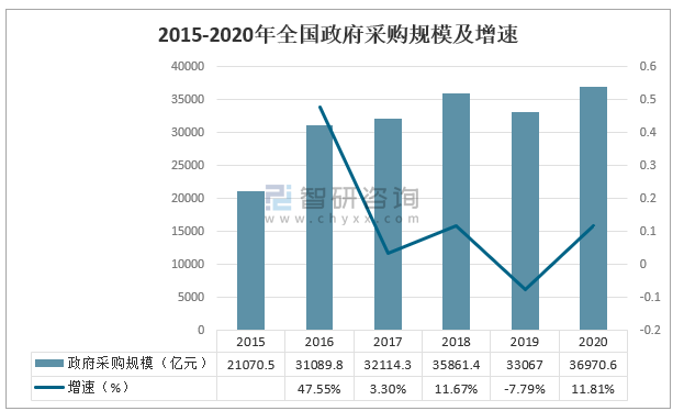 2015-2020年全國(guó)政府采購(gòu)規(guī)模及增速
