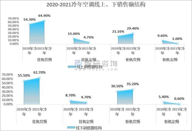 2020-2021冷年空調(diào)線上、線下銷量結(jié)構(gòu)