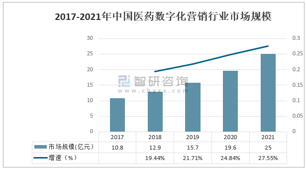2017-2021年中國醫(yī)藥數(shù)字化營銷行業(yè)市場規(guī)模