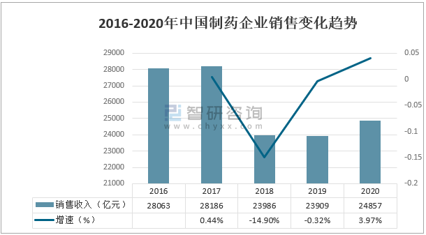 2016-2020年中國制藥企業(yè)銷售變化趨勢