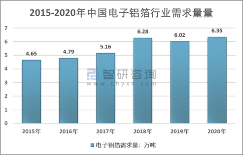 2015-2020年中國電子鋁箔需求量走勢