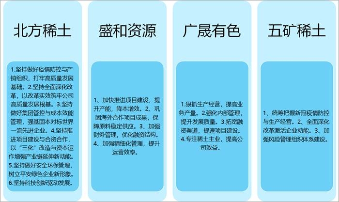 2020年北方稀土、盛和資源、廣晟有色、五礦稀土經營計劃對比