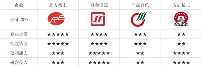 北方稀土、盛和資源、廣晟有色、五礦稀土主要指標對比
