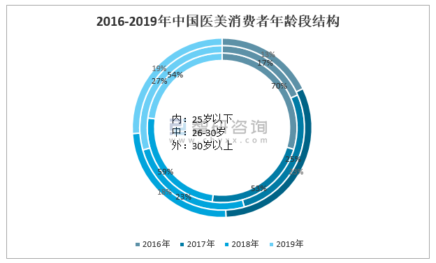 2016-2019年中國醫美消費者年齡段結構