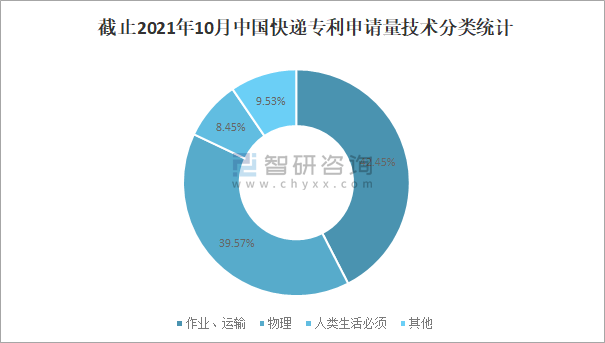截止2021年10月中國(guó)快遞專利申請(qǐng)量技術(shù)分類統(tǒng)計(jì)